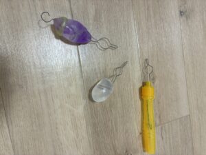 作り方:ピアノ線や硬めの針金を曲げて、お湯で柔らかくなるプラスチック粘土などでその方に合った持ち手を作る